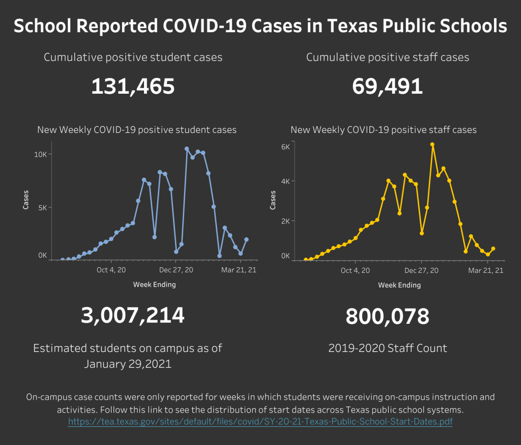 According to a report by the Texas Department of State Health Services, more than 69,000 staff members in Texas public schools have reported testing positive for COVID-19. Teachers attend college to learn how to teach in best-case scenarios, but no university could have prepared the class of 2020 to enter the profession during a global pandemic.